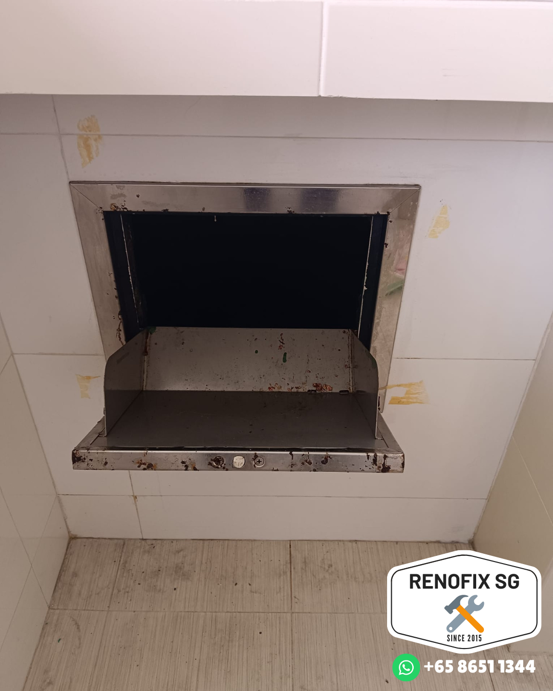 βœ… Supply & Replacement of HDB Rubbish Chute – durable stainless steel chute with smooth finish and tight seal.