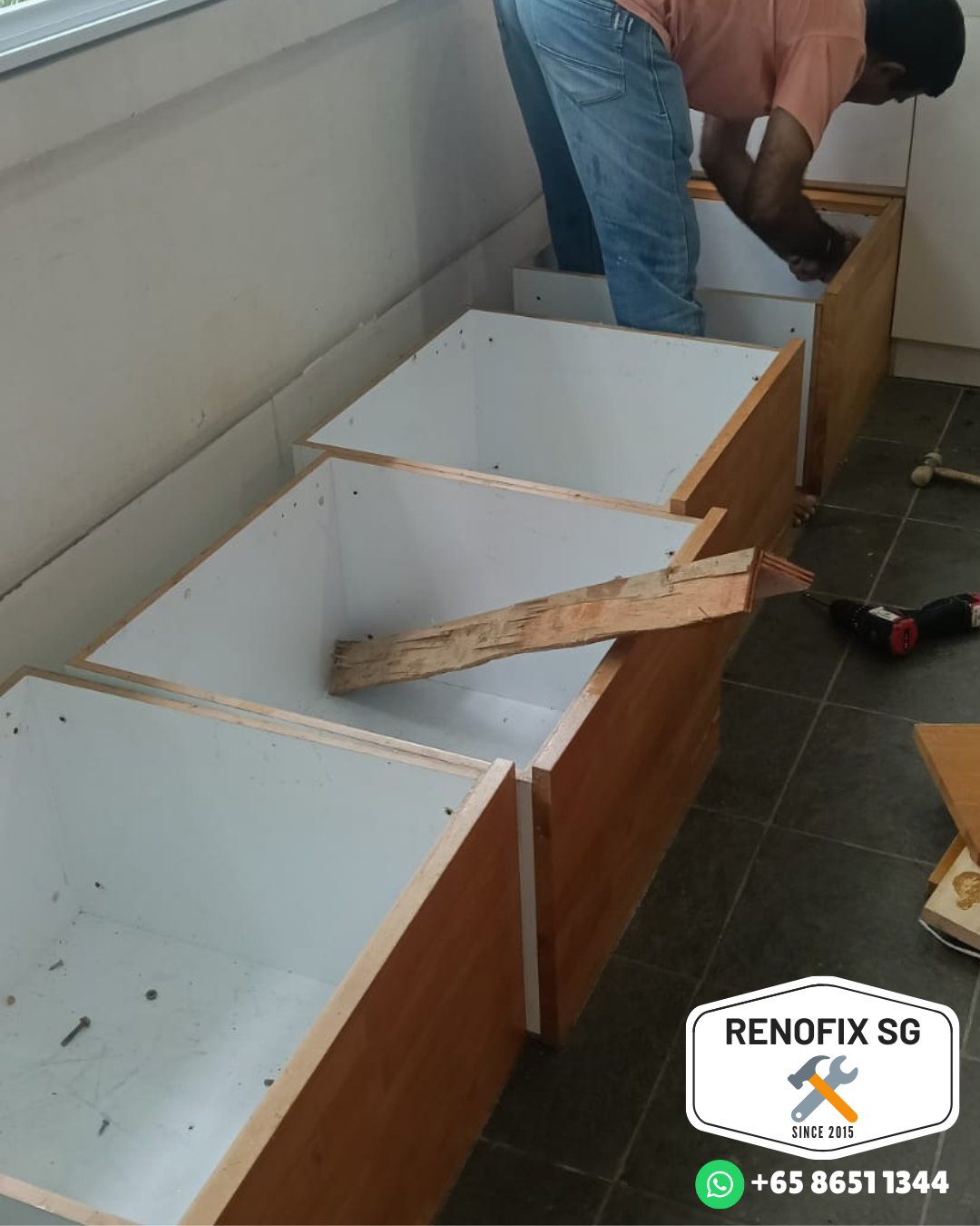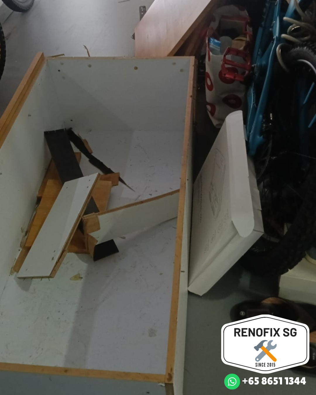 Upgrading your space or preparing for renovation? RenoFix SG provides safe dismantling, removal, and proper disposal of built-in carpentry, including wardrobes, kitchen cabinets, TV feature walls, shelving, and storage units.